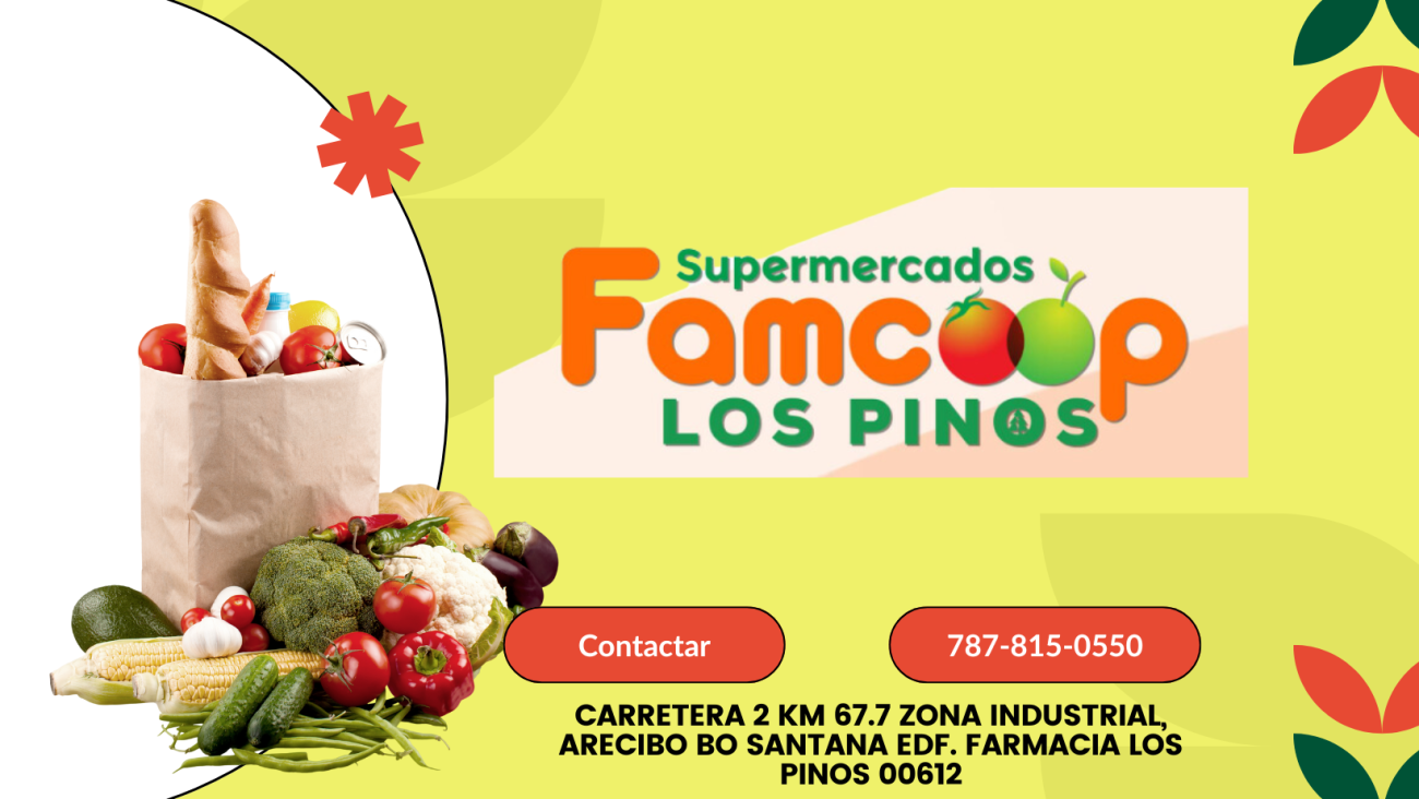Inicio Nuestros Planes ¿Quiénes somos? Categorias Albergues Automoviles Contratistas Veterinarias Cooperativas Funerarias Medicina Contáctanos Menu Inicio Nuestros Planes ¿Quiénes somos? Categorias Albergues Automoviles Contratistas Veterinarias Cooperativas Funerarias Medicina Contáctanos Supermercado FamCoop Los Pinos Carretera 2 km 67.7 Zona Industrial, Arecibo BO Santana edf. Farmacia los Pinos 00612 787-815-0550